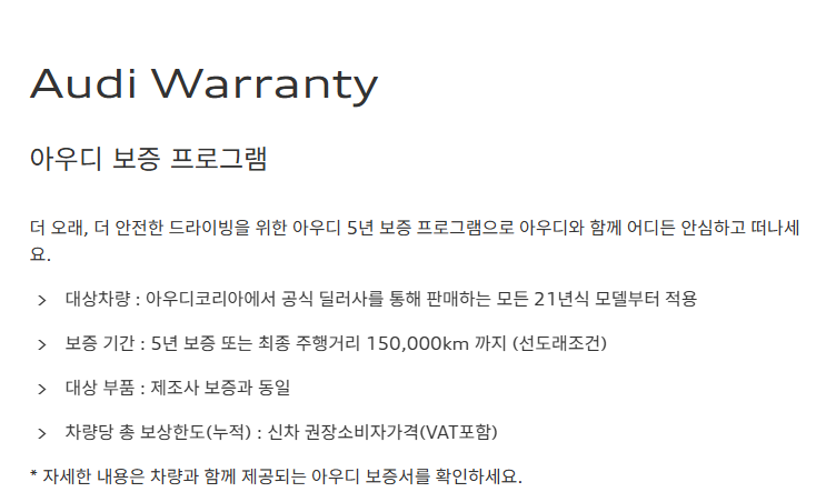 아우디 q5는 아우디 코리아가 5년간 보증을 제공합니다.