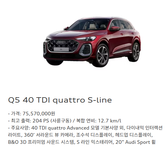 | q5 40tdi 콰트로 s라인 | 75,570,000 |