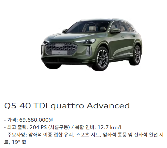 | q5 40tdi 콰트로 어드밴스드 | 69,680,000 |
