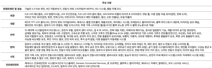 기존 g80 모델에 스포츠 패키지 사양을 추가한 모델로, 2.5가 솔린, 3.5 가솔린, 2.2 디젤 엔진 각각의 모든 엔진에 스포츠 패키지를 추가로 선택이 가능하도록 새로운 모델을 출시하였습니다.