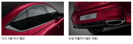 위 사양은 g80 기본 사양인데요, g80 스포츠는 아래 사양이 추가됩니다.