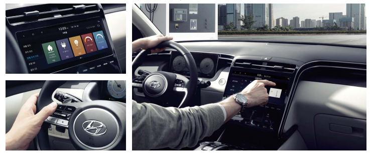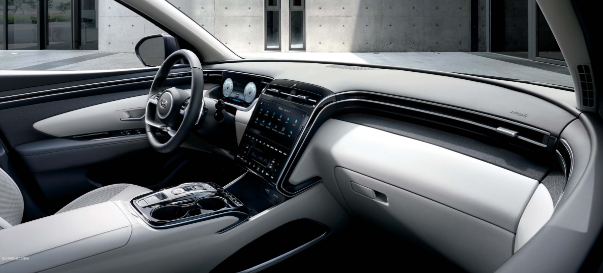 탑승자 중심의 신형 투싼 실내 모습입니다.