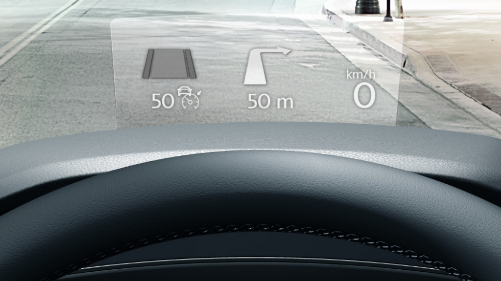 차량 속도, 내비게이션 세부 정보를 포함한 주행 정보가 투사되어 명확하게 표시되므로, 운전자가 시선을 돌리지 않고 집중해서 운전할 수 있도록 도와줍니다. (Prestige 적용)