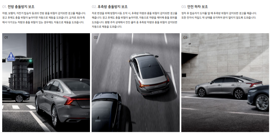 - 첨단 운전자 보조 기능(전방 충돌 방지 보조 시스템, 차로 이탈 방지 등)