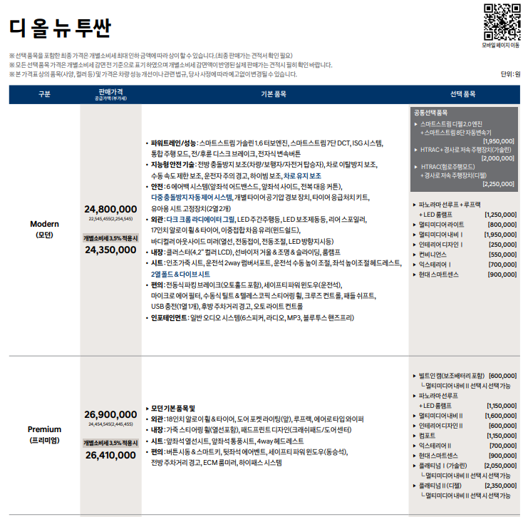 투싼 모던 품목 기본 품목 포함 이외