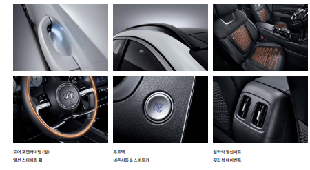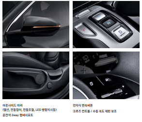 앞좌석 열선시트, 앞좌석 통풍시트, 가죽 스티어링 휠(열선 포함), 4 way 헤드레스트