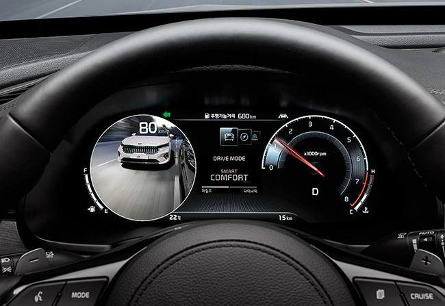 12.3인치 칼라 TFT LCD 패널을 적용하여 차량 상태 및 다양한 주행 정보를 전달함으로써 운전을 안전하고 편리하게 도와드립니다.