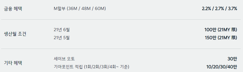 기아 자동차 8월 판매조건, 구매혜택, 프로모션 (2021)