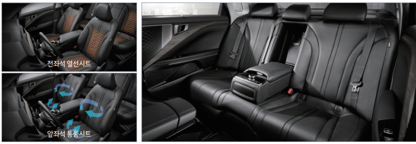 동승석 승객이 하차 후 좌석을 운전석에서 조절하는 워크인 디바이스는 굉장히 편리한 택시 옵션 기능으로 보입니다. 또한, 앞좌석 열선, 통풍시트가 적용되어 실제 차 내부에서 보내는 시간이 많으 신만큼 편리하게 이용 가능해 보입니다.