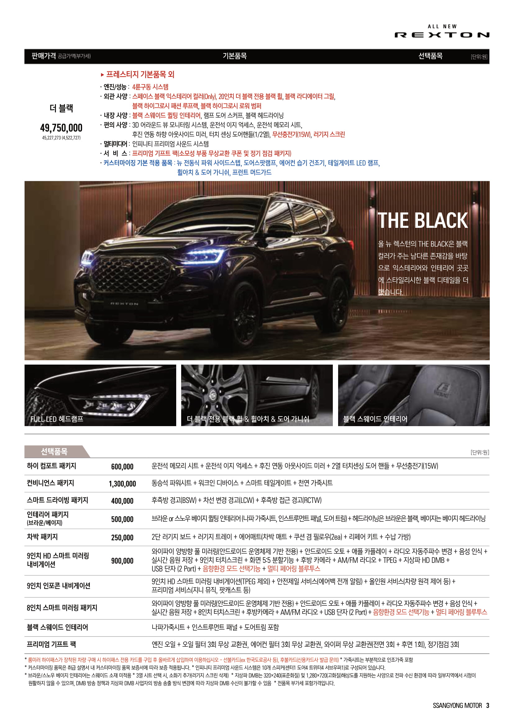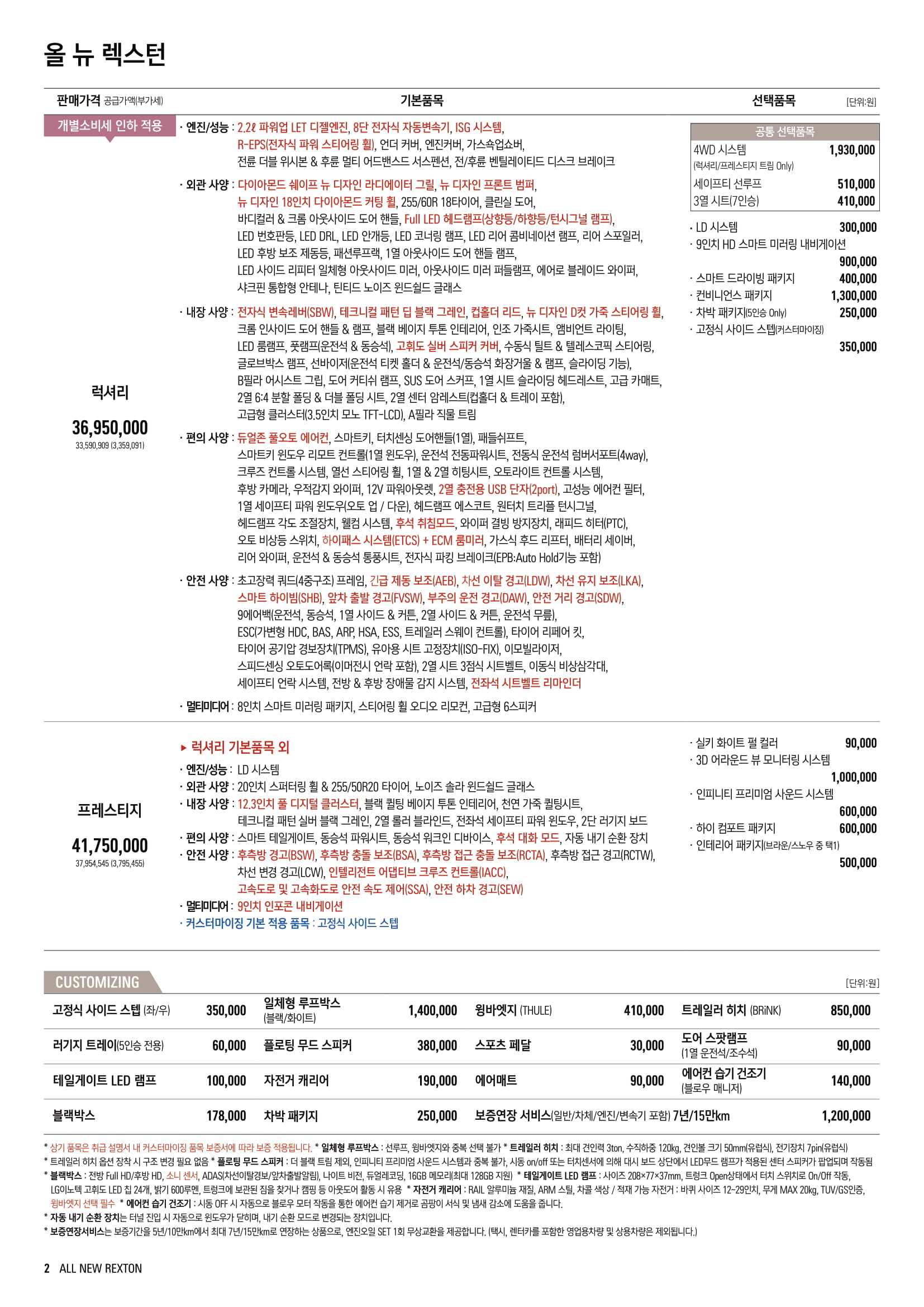 여기까지가 렉스턴 럭셔리 트림의 가격 및 옵션을 알려드렸습니다.