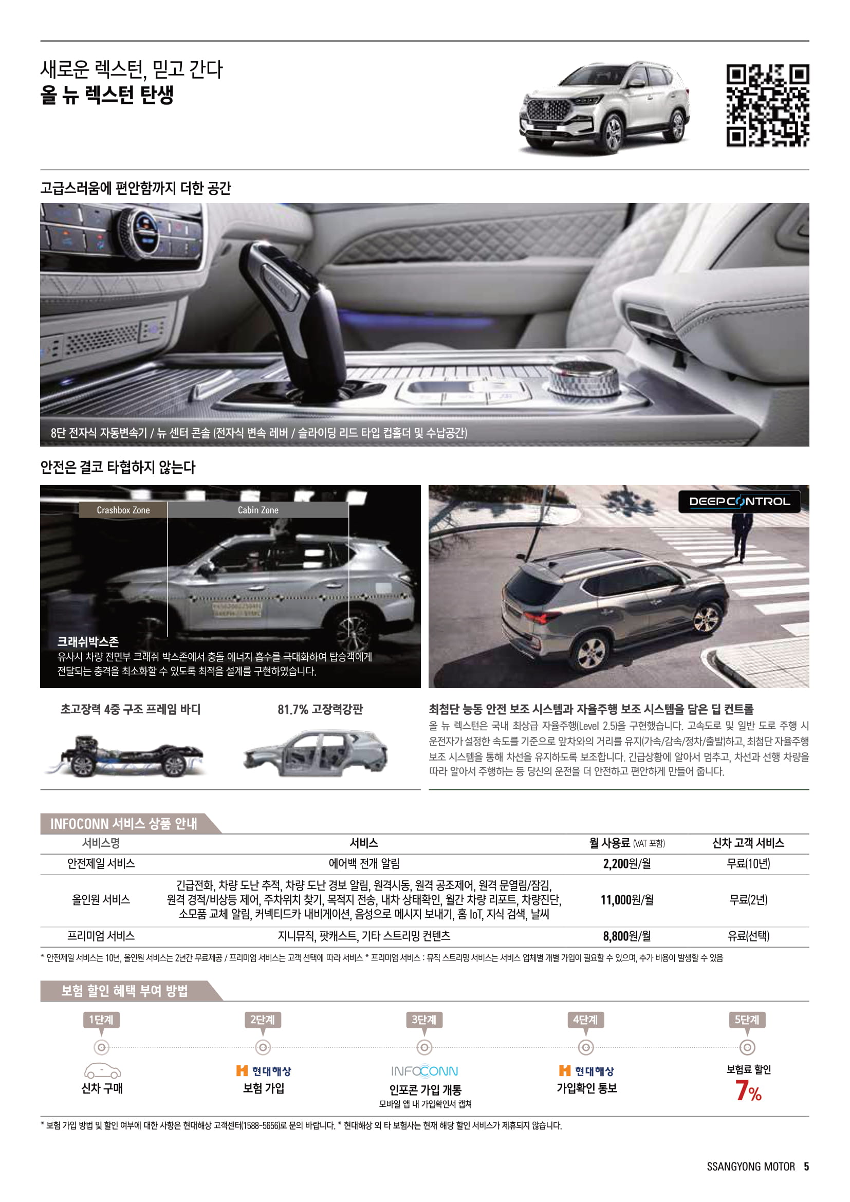 •안전 사양 : 초고장력 쿼드(4중구조) 프레임, 긴급 제동 보조(AEB), 차선 이탈 경고(LDW), 차선 유지 보조(LKA),