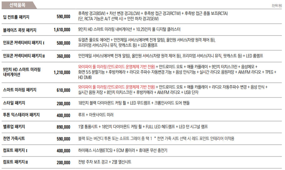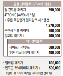 각 트림별로 어떠한 옵션에 가격은 어떻게 책정되었는지 알아보겠습니다.