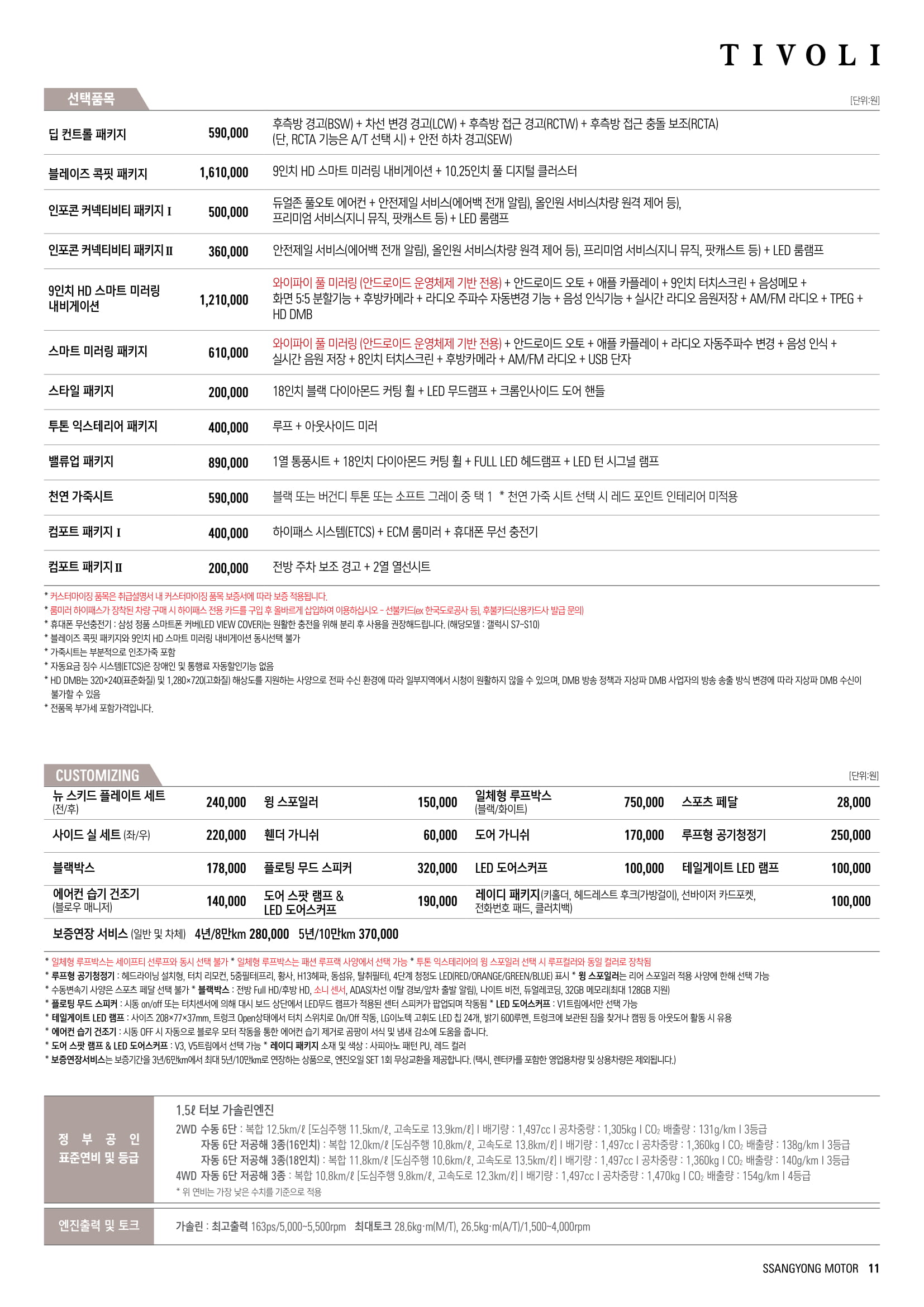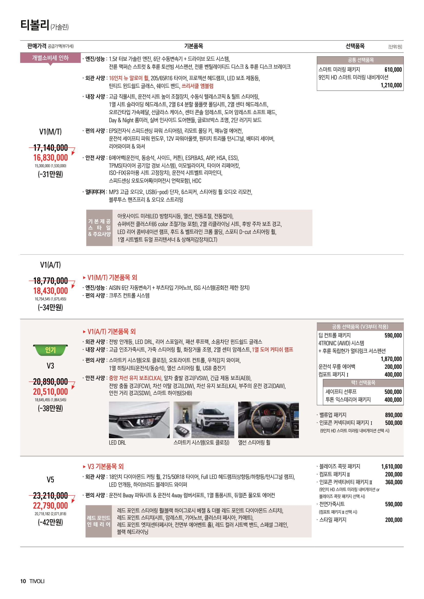 2021 티볼리 옵션, 가격