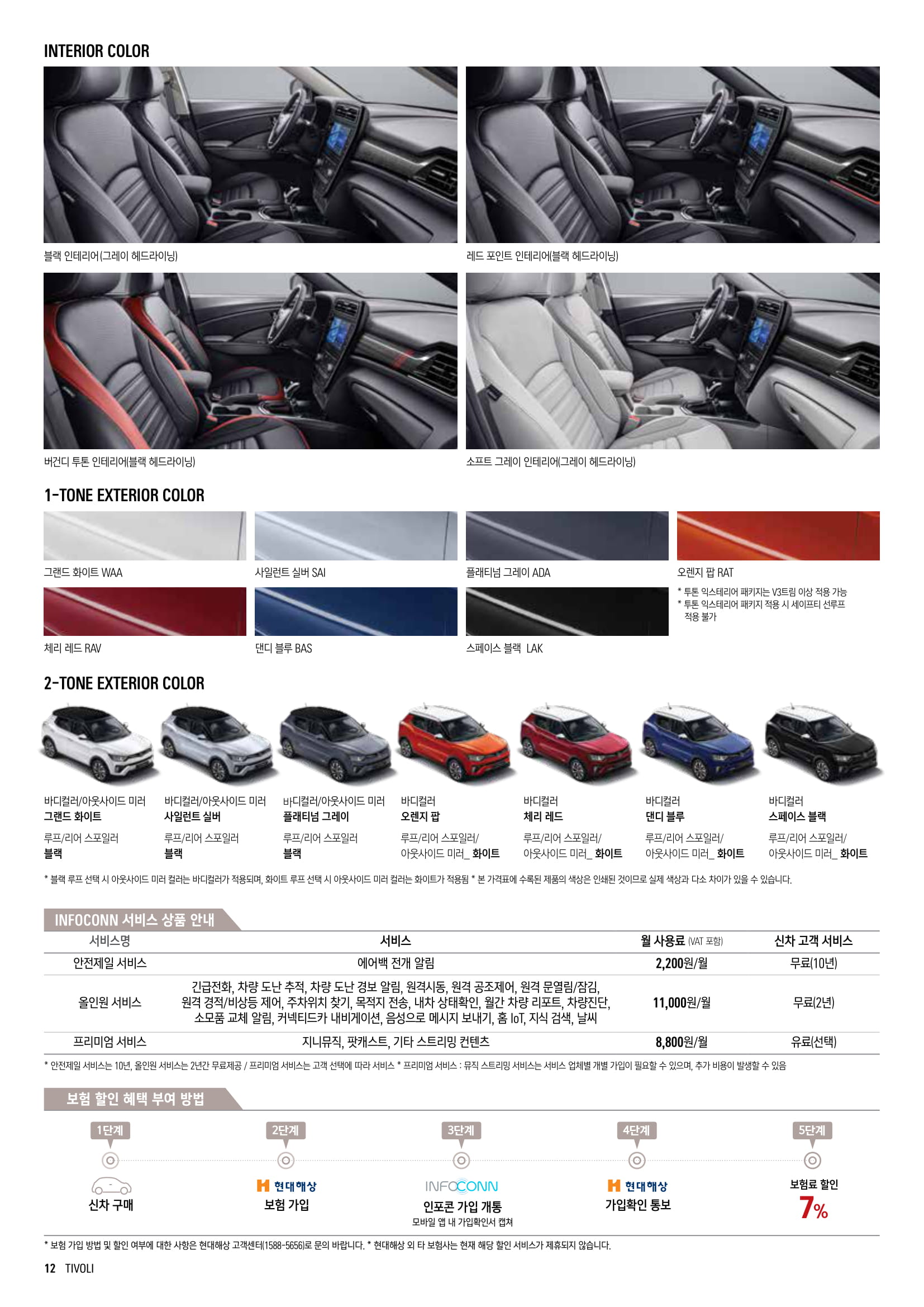 •외관 사양 : 전방 안개등, LED DRL, 리어 스포일러, 패션 루프랙, 소음차단 윈드쉴드 글래스