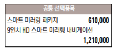 또한, 가격 대비 구성되는 옵션도 타사 동급 차량에 비하여 준수한 모습을 보여주고 있습니다.