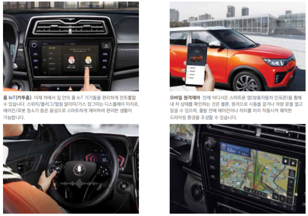 말만 하면 인공지능 검색으로 맛집, 음악, 날씨 등을 알아서 척척 찾아서 알려주고 차 안에서 집에 있는 조명, 문 잠금, 가스 잠금 등 가전제품들을 제어해주는 홈 IoT(카투 홈) 기능을 통해 커넥티드 서비스를 제공하고 있죠.