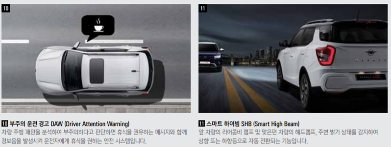 주행보조장치를 통하여 다음과 같은 많은 안전 편의사양을 제공합니다.