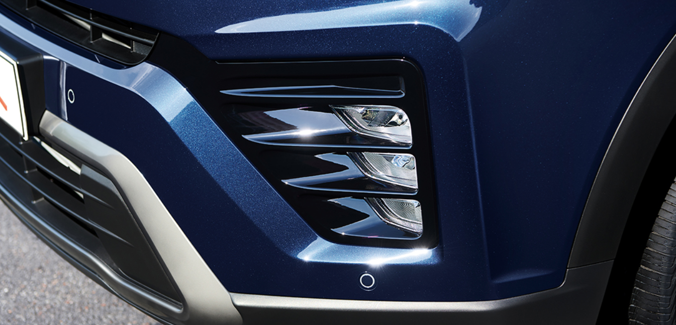 범퍼 바벨(Barbell) 타입의 프런트 범퍼 적용으로 강인하고 유니크한 전면부 이미지 구현