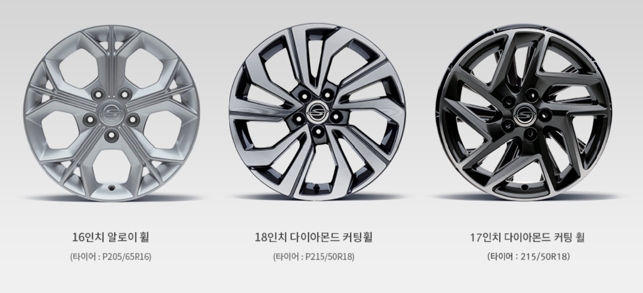 티볼리 에어의 휠의 경우도 16~18인치 휠로, 3가지 디자인을 하고 있습니다.