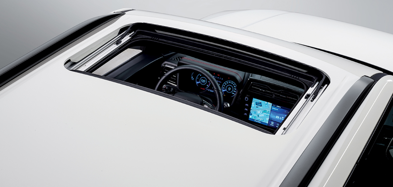 크롬 가니쉬와 함께 윈드쉴드 글래스로부터 그린하우스까지 연결되어 세련된 외관 디자인 구현