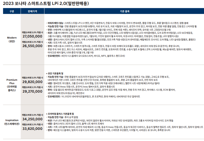 2023 쏘나타 스마트 스트림 lpi 2.0