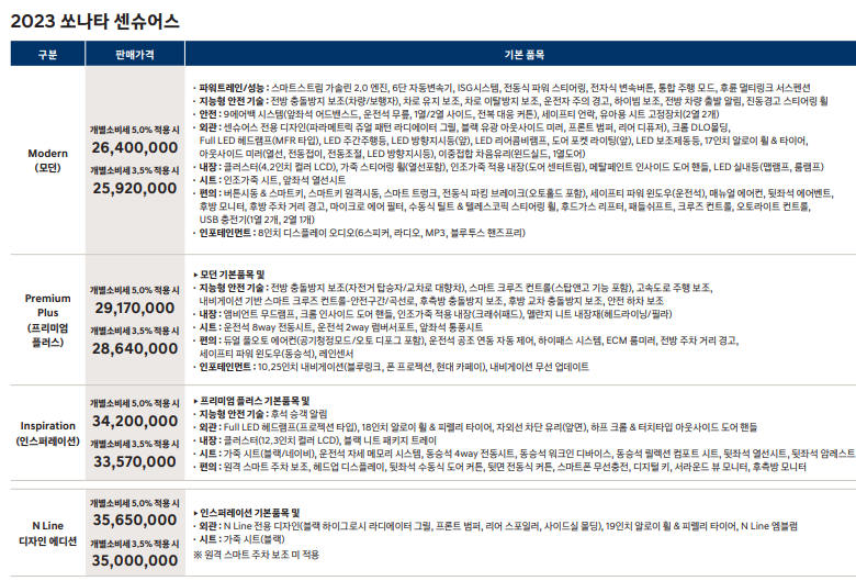 2023 쏘나타 가격 인상 폭은?