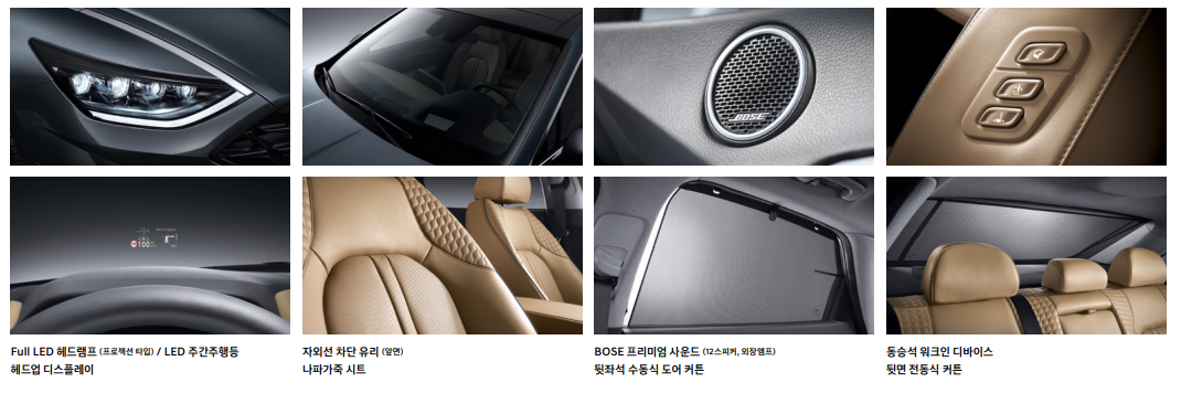 최상위 버전 인스퍼레이션은 자외선 차단 유리, bose 스피커, 전동식 커튼, 나파가죽 시트 등의 고급 사양이 탑재되어 있어 탑승객에게 충분한 만족감을 전달하고 있습니다.
