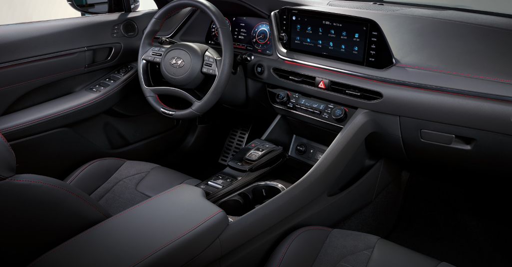 실내 디자인도 쏘나타 n 라인 디자인은 레드 스티치가 곳곳에 들어가 스포티함을 강조하고 있습니다. 런치 컨트롤, 파워쉬프트 등의 기능도 적용되어 n 라인 특화 사양으로 자리 잡고 있습니다.