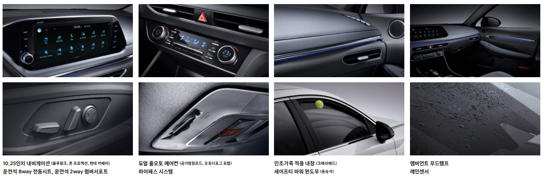 2천만 원 중반부터 가격이 시작되는 쏘나타는 그랜저에 비해서도 저렴하기에 충분히 구매를 고려해 볼만 하다고 생각됩니다. 특히, 하위 모델인 아반떼와도 큰 가격차이가 나지 않기에 3세대 플랫폼을 적용 중이 쏘나타는 아직까지도 경쟁력을 충분히 지니고 있습니다.