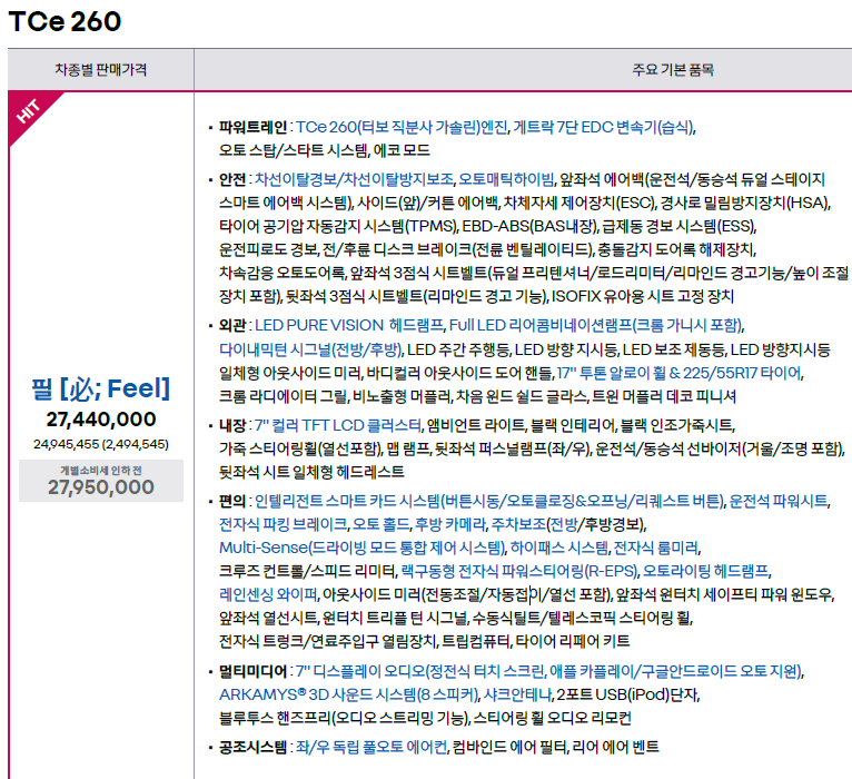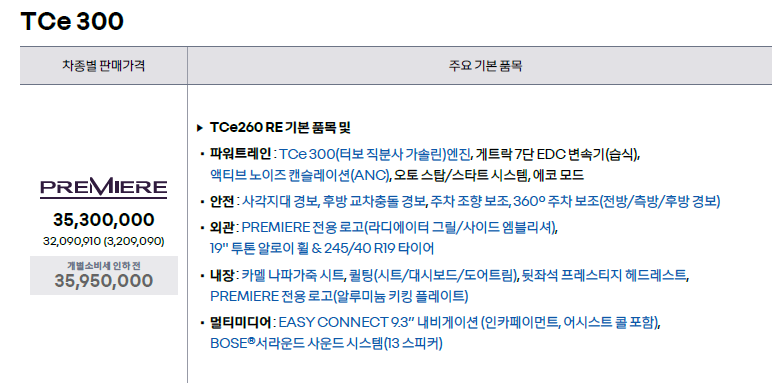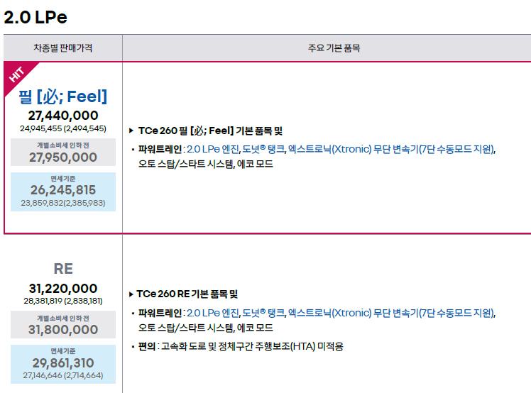 각각이 tce 260, tce300, 2.0 lpe로 불려집니다.