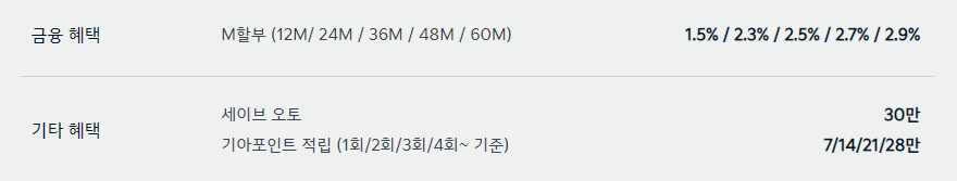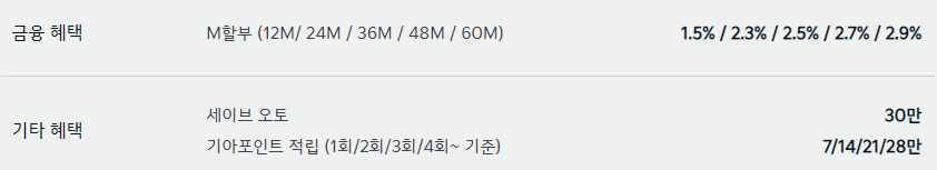 또한, 세이브 오토 20만 원, 기아 포인트 적립의 혜택도 제공됩니다.