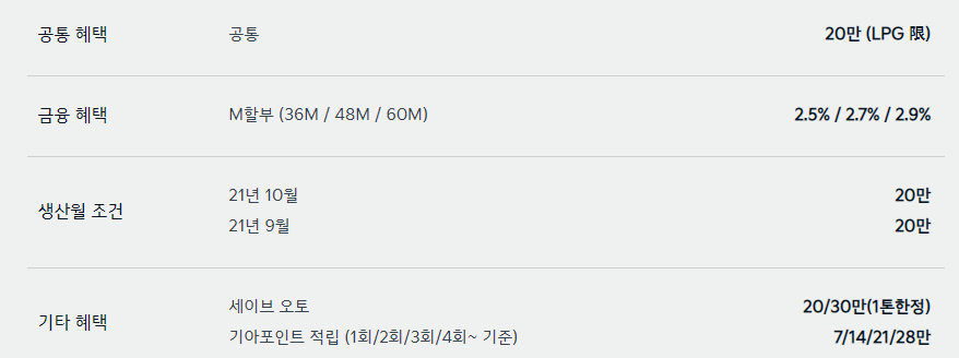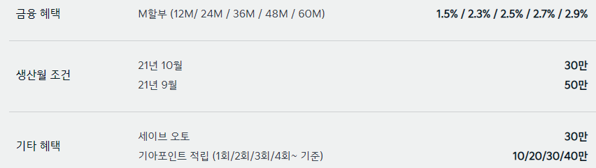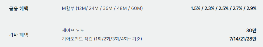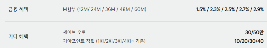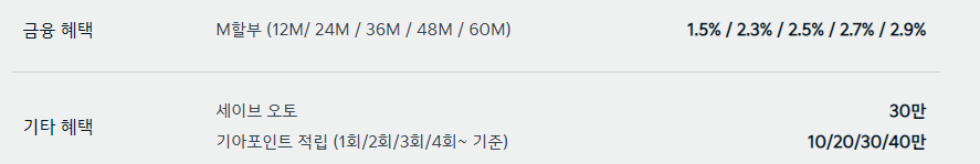 또한, 세이브 오토 20만 원, 기아 포인트 적립의 혜택도 제공됩니다.