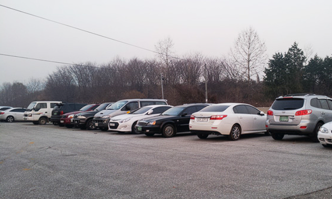 공항 리무진 승차장 뒤편에 차들이 많이 존재하기에 쉽게 찾을 수 있습니다.