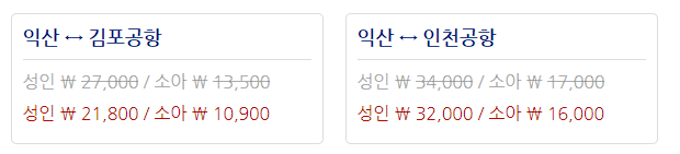 익산 ic 공항리무진 요금