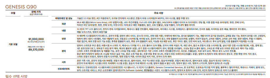 제네시스 g90은 이번 풀체인지를 통하여 상품성이 개선되었습니다.