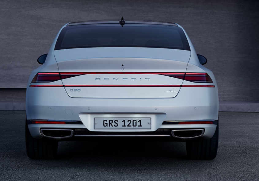 제네시스 g90 후면은 쿠페형 디자인이 적용되었음을 알 수 있습니다.