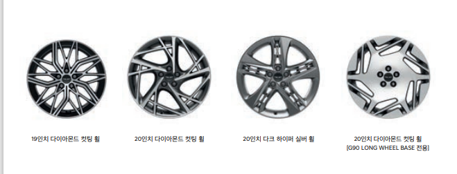 제네시스 g90에 적용되는 휠은 4가지 디자인입니다.