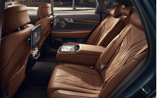 제네시스 g80 실내공간은 성인 4명이서 이동하기에 충분한 공간을 보여줍니다.