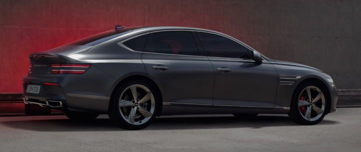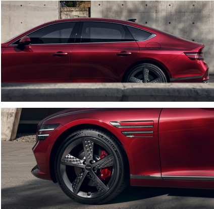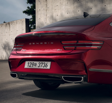 전용 카본 소재 가니쉬, 20인치 스포츠 휠로 스포티한 디자인을 선보이며 젊은 소비자들에게 큰 인기를 얻고 있는 제네시스 g80 스포츠입니다.
