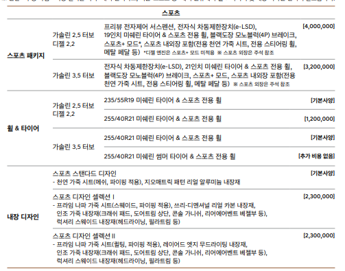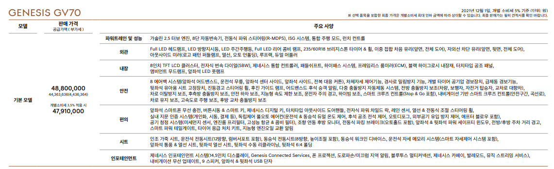 제네시스 gv70은 기본 모델을 바탕으로 선택 옵션을 추가하여 가격이 결정되는 시스템입니다.