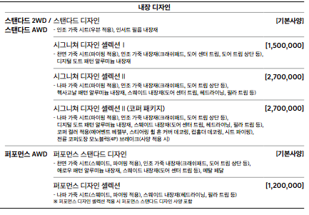 각 트림별 가격과 사양을 알아보겠습니다.