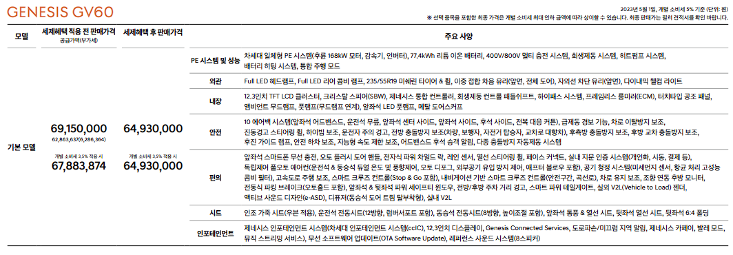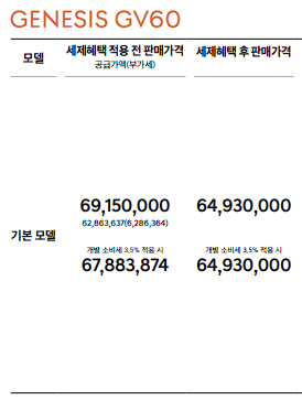 gv60 가격은 보조금 적용 전 가격입니다.