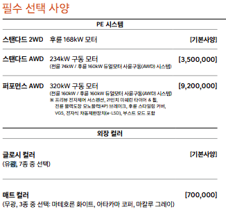 스탠더드 awd 최고 출력 : 234kw