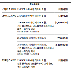 스탠더드 2wd 최고 출력 : 168kw