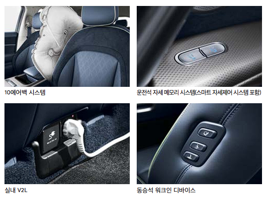 실내 v2L 콘센트를 통하여 각종 전자기기 충전이 가능합니다.