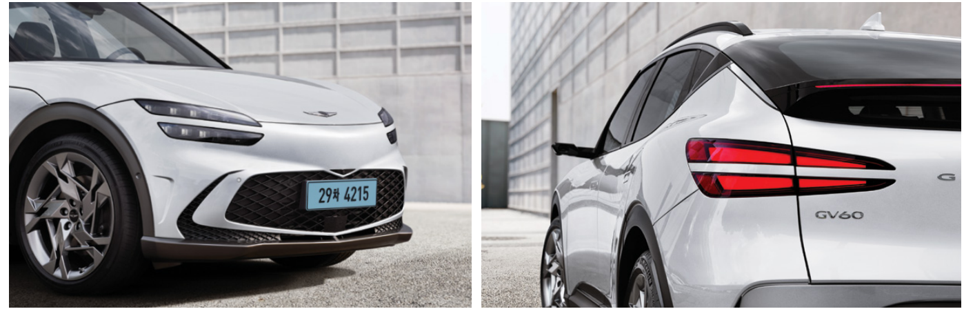 gv60은 새로운 제네시스 디자인으로 전기차 전용 디자인이 적용되었습니다.