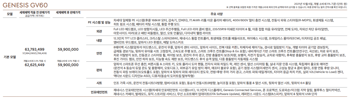제네시스 gv60 전기차 가격표