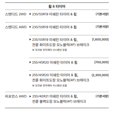 - 19인치 휠, 미쉐린 타이어
