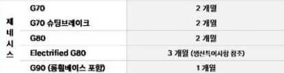 제네시스 브랜드의 차량들의 3월 납기 일정을 살펴보았습니다.