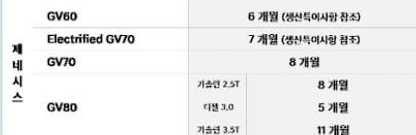 제네시스 브랜드의 차량들의 3월 납기 일정을 살펴보았습니다.